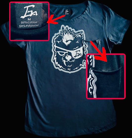 (Curved Hem/ Pocket) T-Shirt (Wolf Mug Shot)